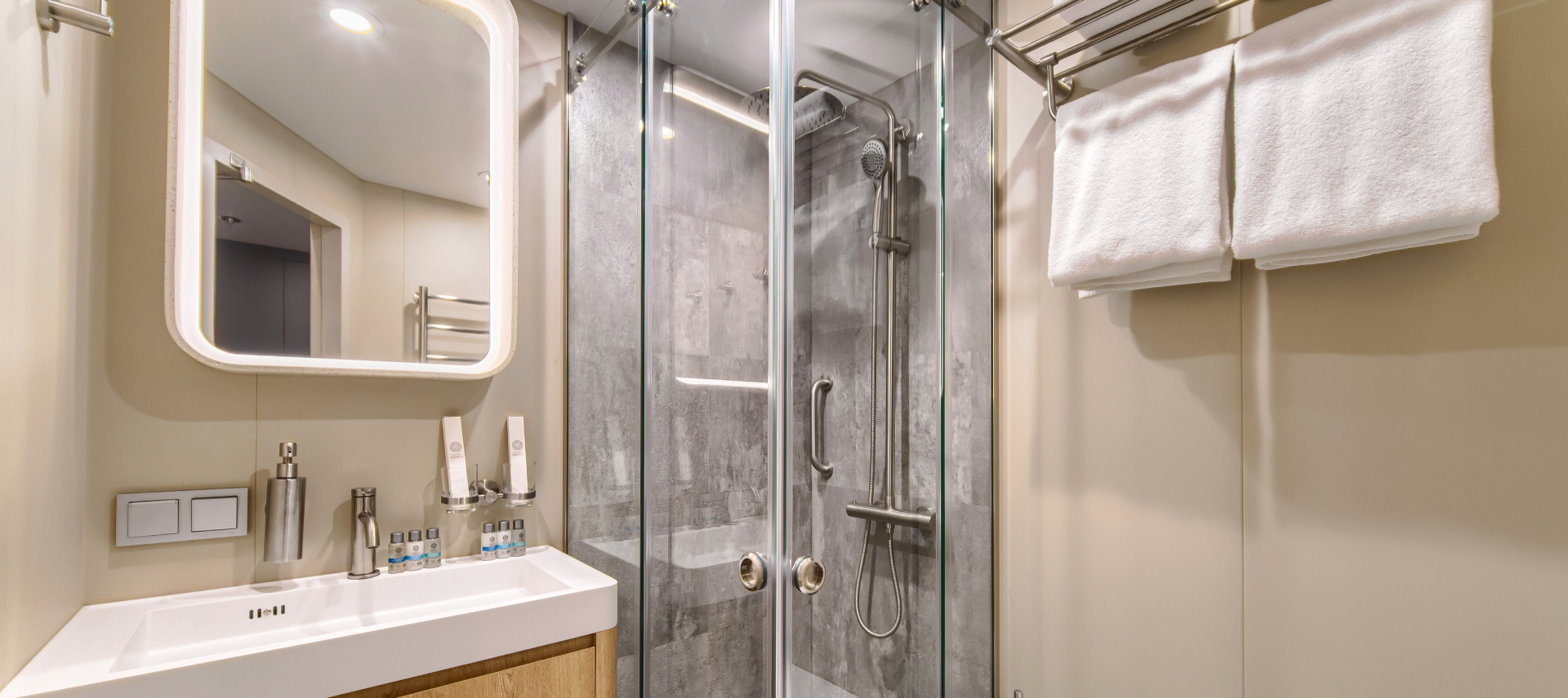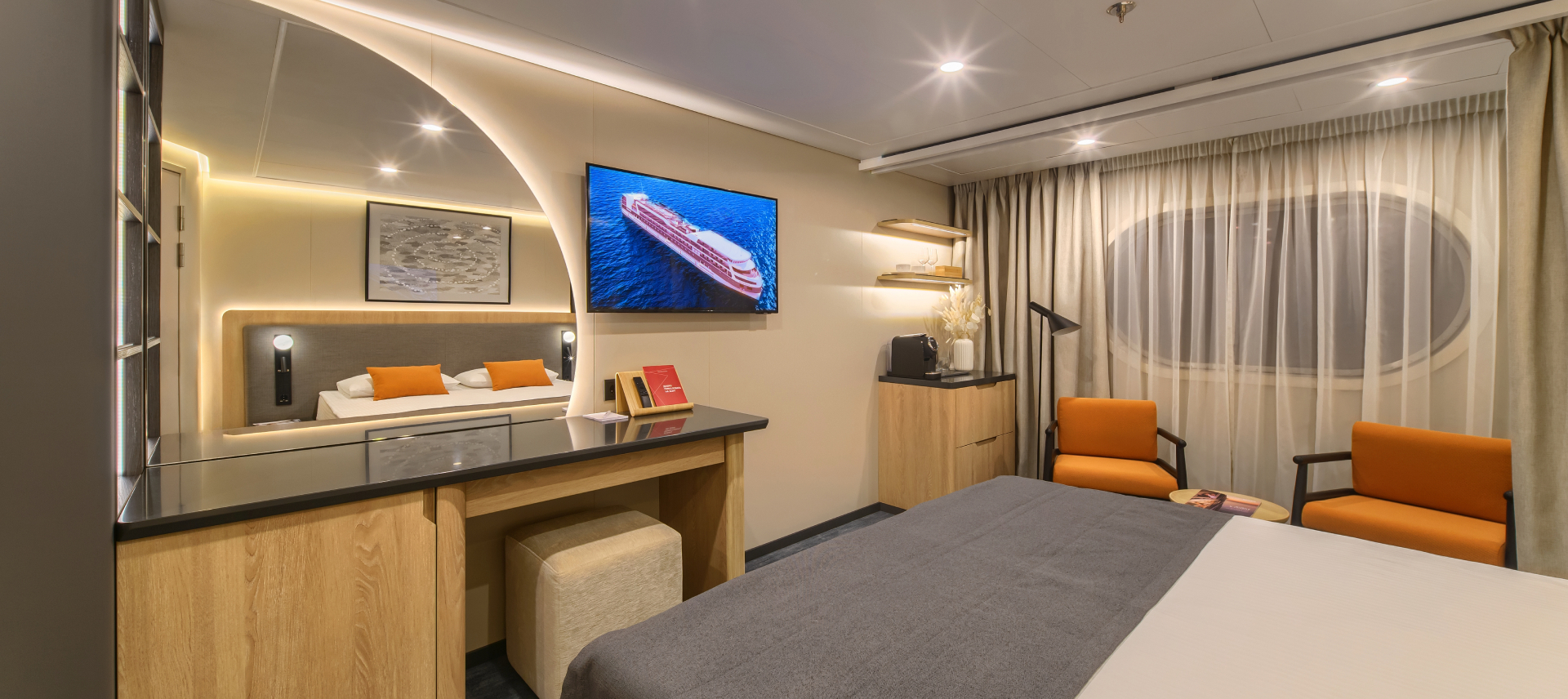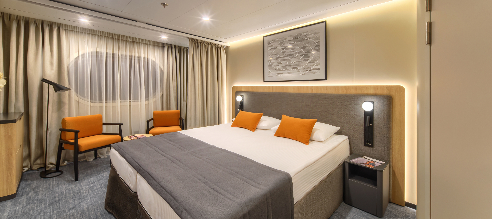 In total, guests will be offered 88 cabins in seven categories on board. Most cabins will have a balcony. For passengers with limited mobility, there is one luxury cabin with a balcony on the boat deck.