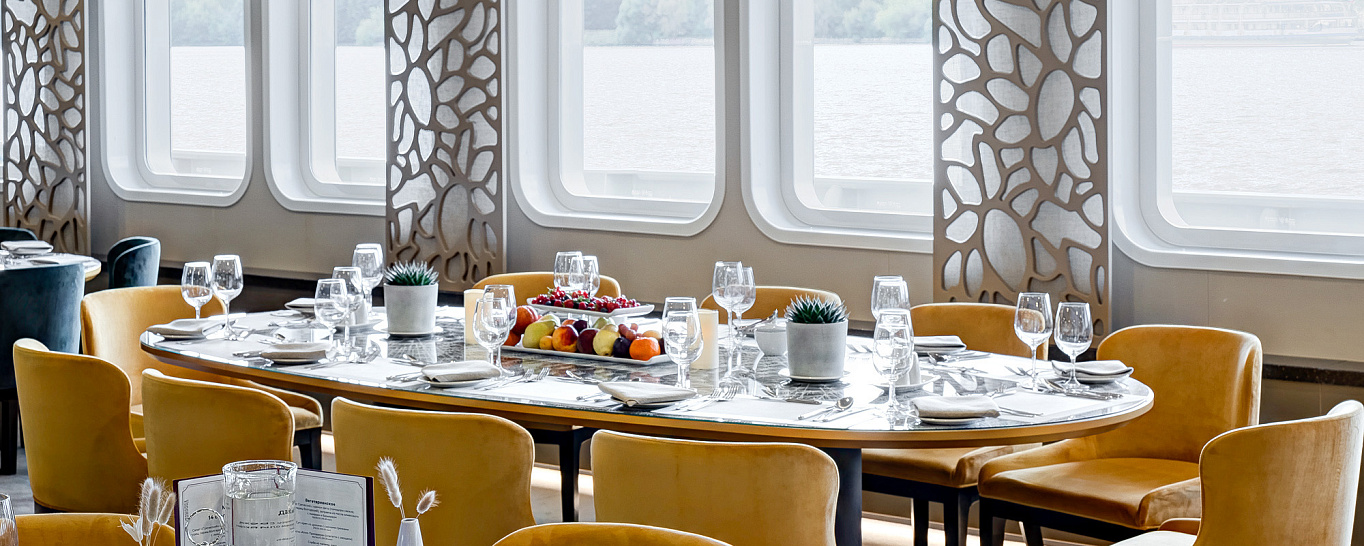 The service team is tirelessly working around the clock to make sure our guests enjoy their stay. Our staff will take care of your rooms and provide assistance during meals. They will also be happy to organize a celebration for a birthday or an anniversary during the cruise. And you don’t need a special occasion to order breakfast in bed or a bottle of champagne.