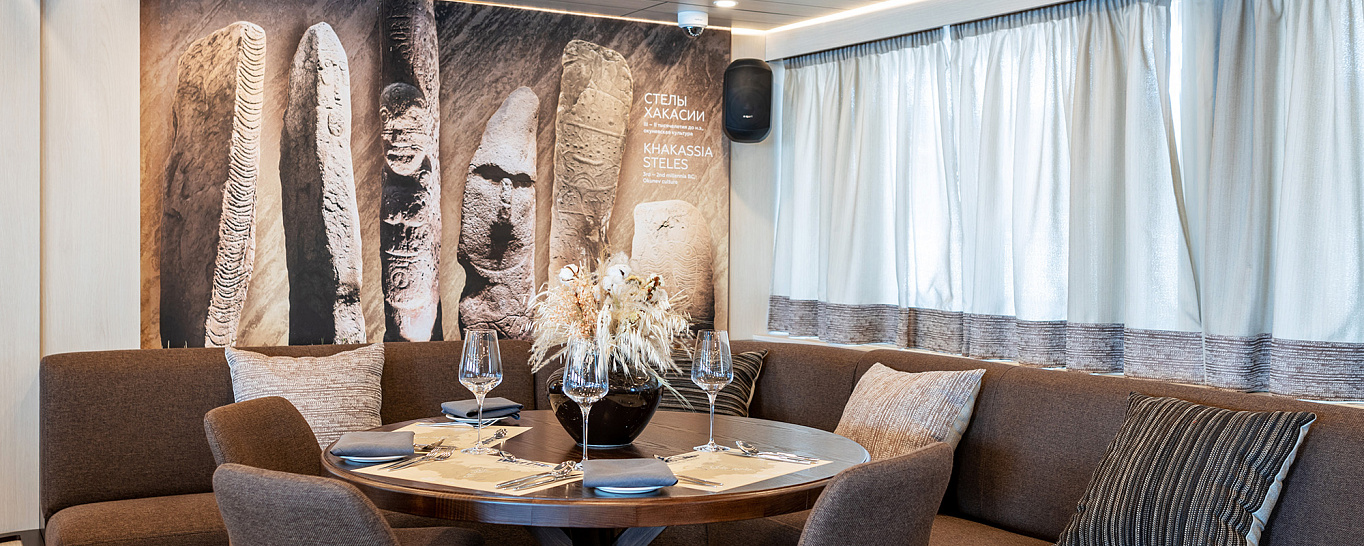 The staterooms onboard Vodohod’s ships are designed with great attention to detail, making your stay not only comfortable but aesthetically pleasing. All cabin categories have their own en-suite bathroom, a wardrobe, double beds or a queen bed, AC, sockets, TV, and radio for internal news and updates during the cruise. Higher-class rooms have lounge areas and private balconies.
