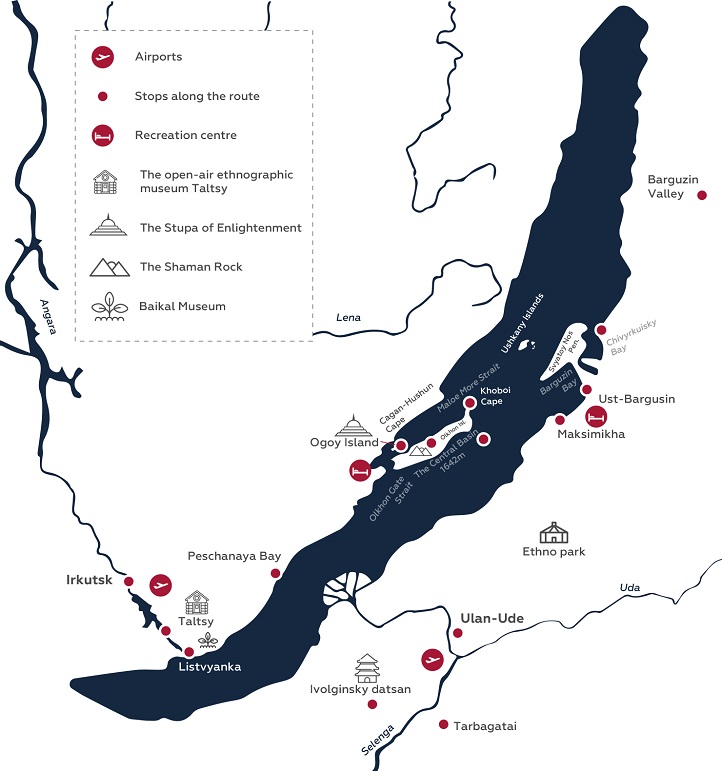 Moscow KrasnoyarskNizhny NovgorodAstrakhanBakhtaBarabanovoBarguzin bayCheboksaryChivyrkuisky bayGalaninoGoritsyIgarkaIrkutskIvolginsky datsanKangotovoKazanKhoboi CapeKizhiKostromaMaksimikhaMaloye More (the Small Sea)MandroguiOgoy IslandOlkhon GateOlkhon IslandPeschanaya BayRostov-on-DonSagan-Khushun CapeSamaraSaratovShaman Rock Steppe Nomad ethno-complexTaltsyTarbagataiThe deepest point of Lake BaikalTurukhanskUglichUlan-UdeValaamVolgogradVorogovoYaroslavlYartsevoYermakovo